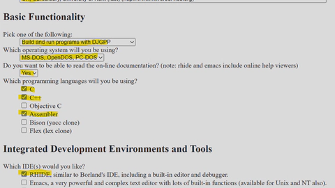 The zip picker page also gives you instructions on how to install DJGPP and RHIDE but it doesn’t explain how to get those files into your DOS machine in the first place.