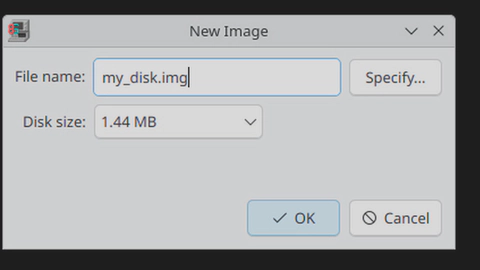 Make sure you choose 1.44MB as the size, and put .img at the end for the extension.