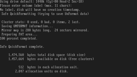 Then, because it’s DOS, format the disk from within DOS